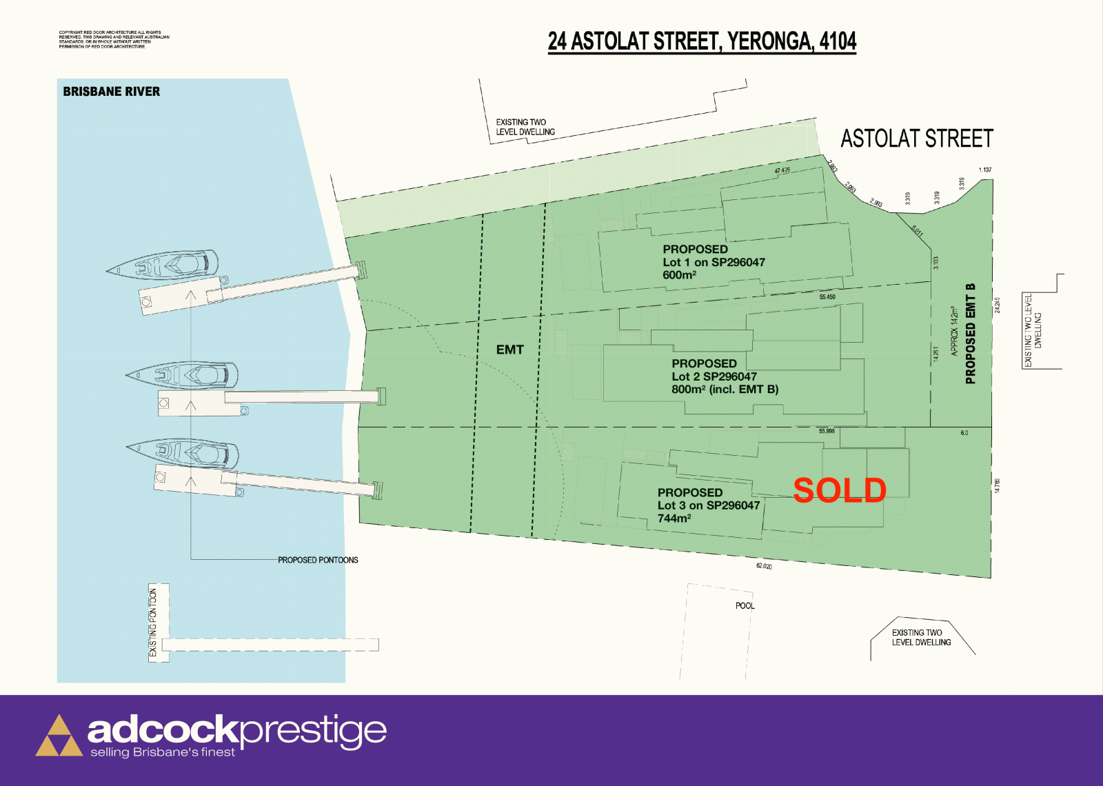 The flat building pads facilitates the construction of a residence that will enjoy high unobstructed views down two stretches of the Brisbane River and across to the Indooroopilly Golf Course. Pontoon’s have been approved for all blocks and will be installed as part of the purchase price, allowing unfettered access to the boating, fishing and water-sport lifestyle benefits of riverfront living.